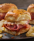 12 of our Take & Bake Italian Sliders. Seasoned Slider Buns, ham, salami, with lettuce, tomato, provolone cheese, onion and peppers.